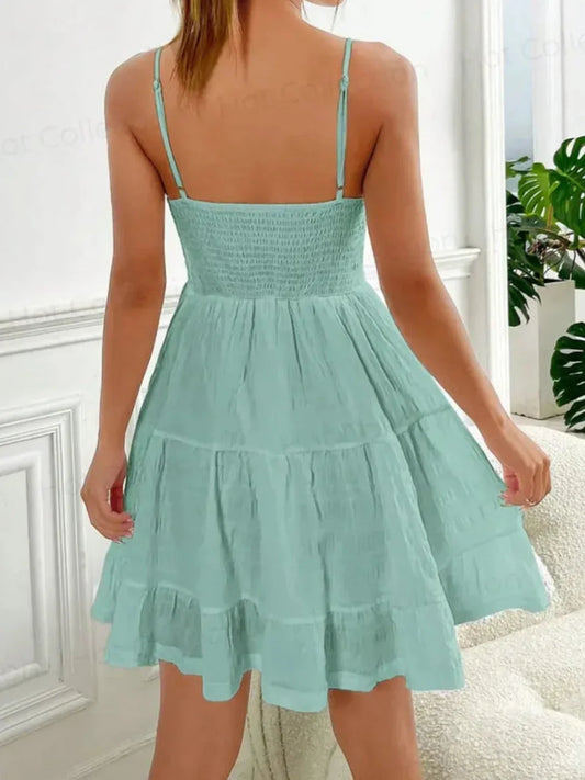 • Stylish black Boho Fringe dress with openwork lace trim and fringe hem, perfect for summer and casual occasions.