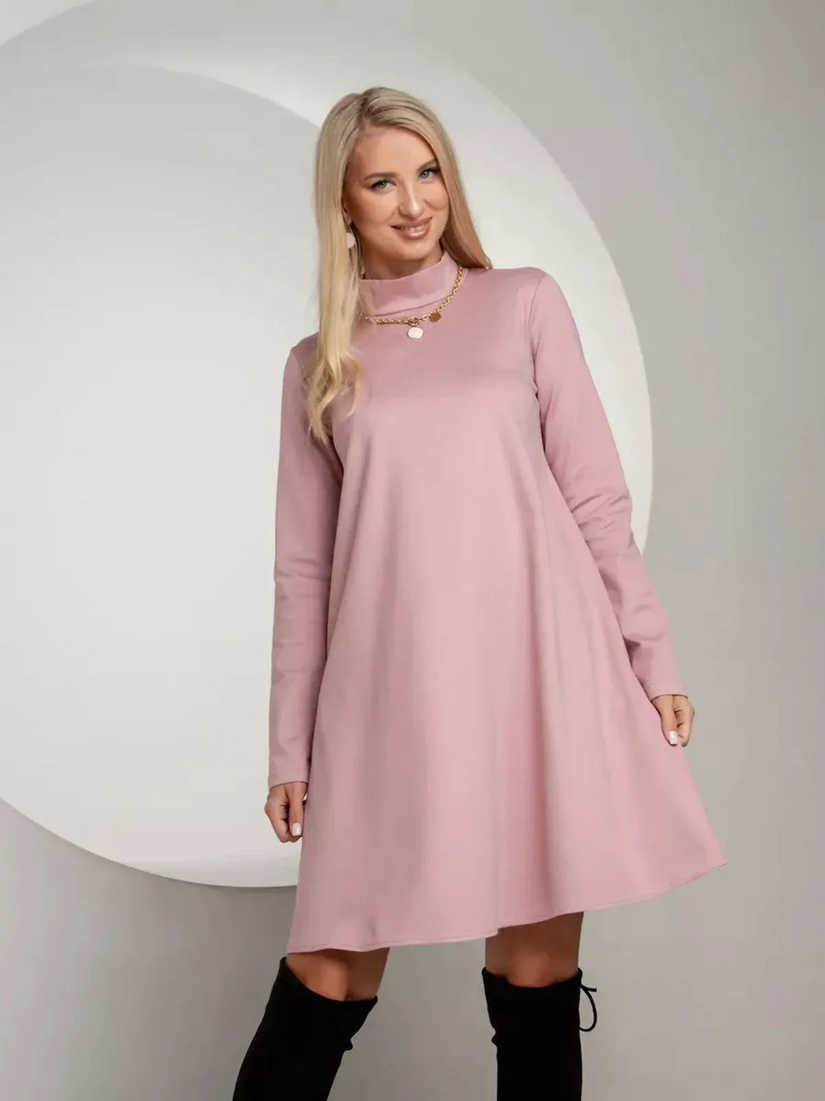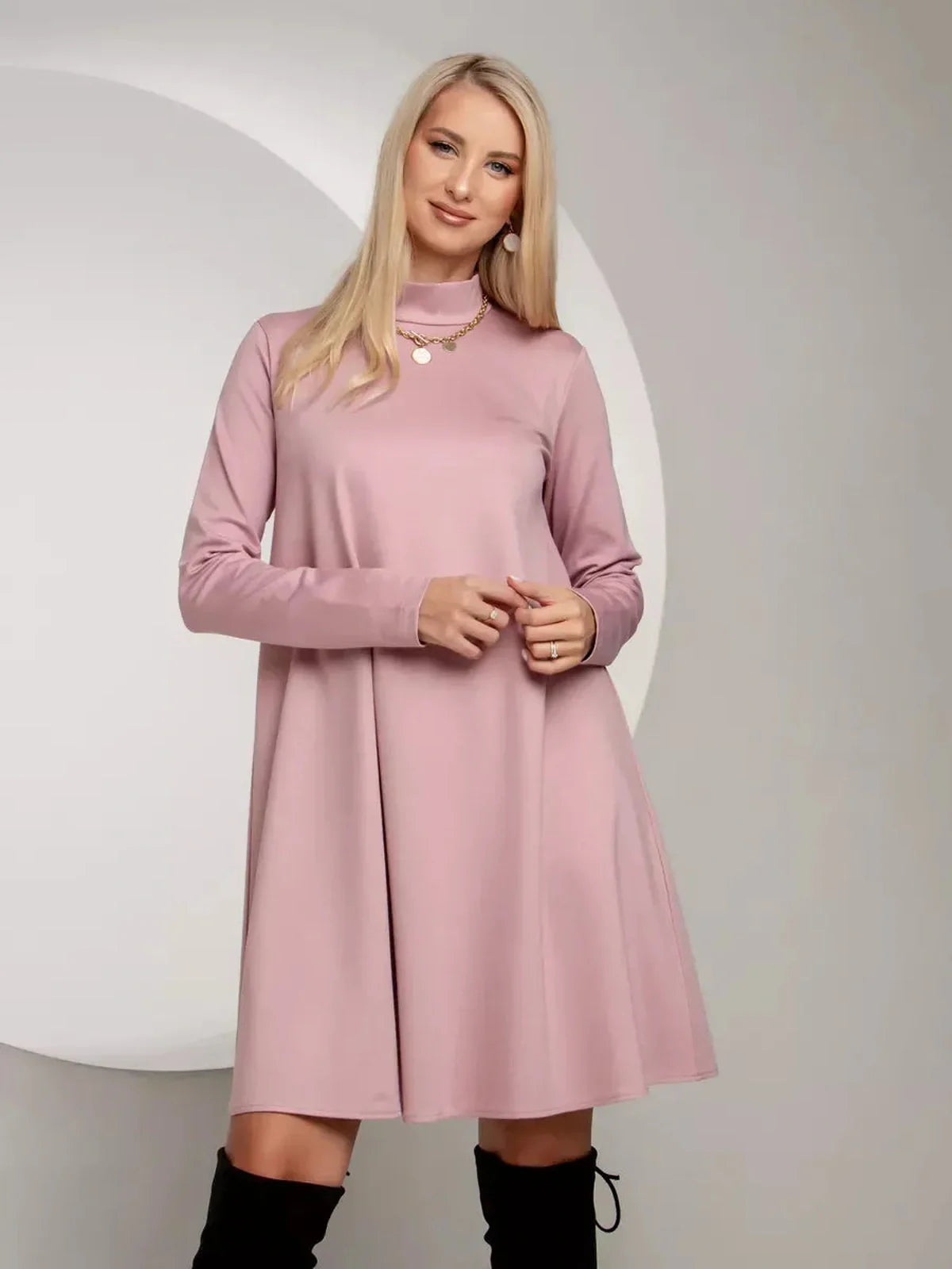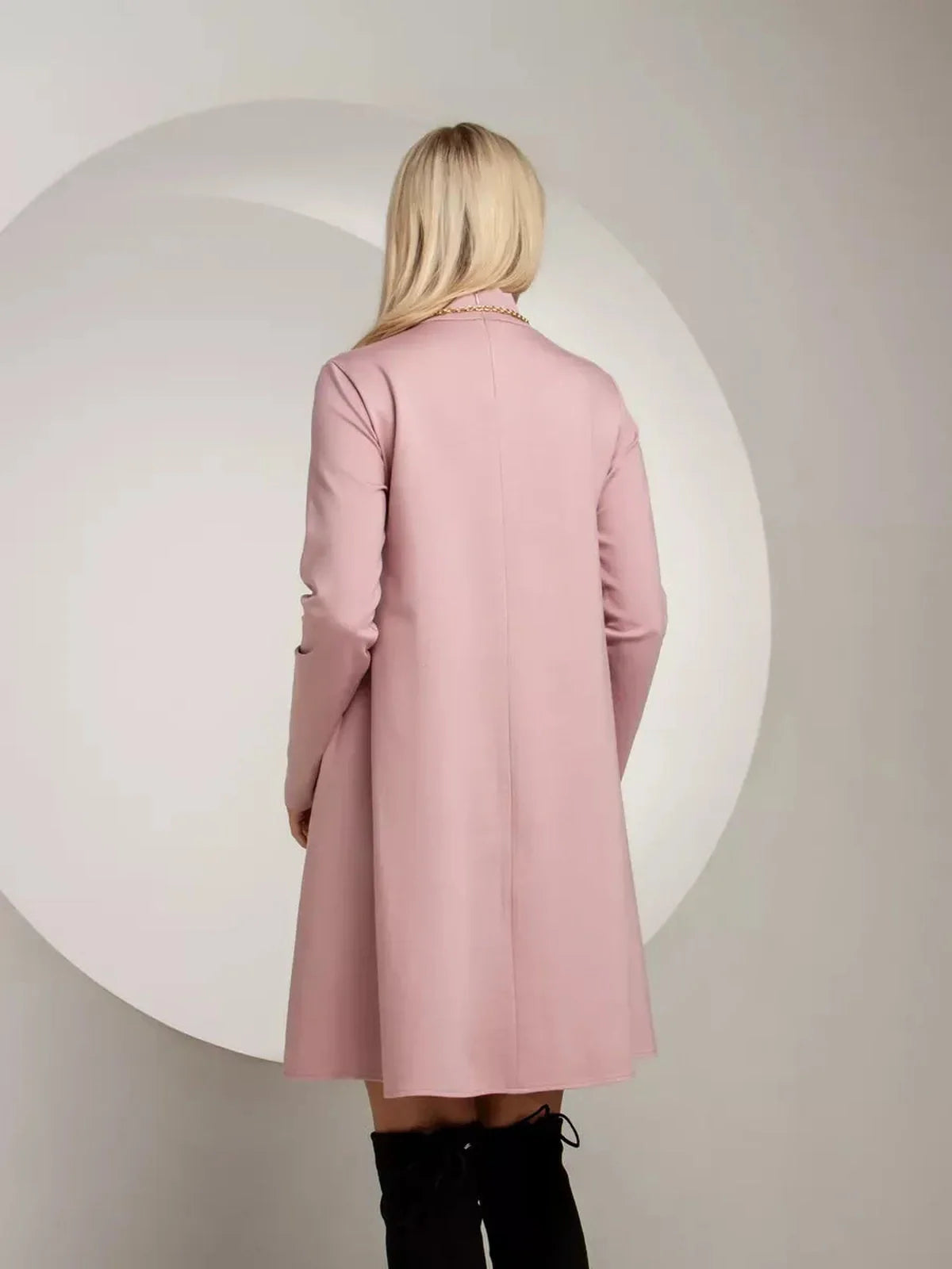 The tailored long sleeves and minimalist stand collar neckline lend a refined, architectural edge, while the A-line silhouette gently skims the figure for a universally flattering fit. Designed with a hidden back zipper for seamless closure and no pockets for a clean, uninterrupted drape, the Blush Aura Mini Dress is a celebration of modern elegance in motion.