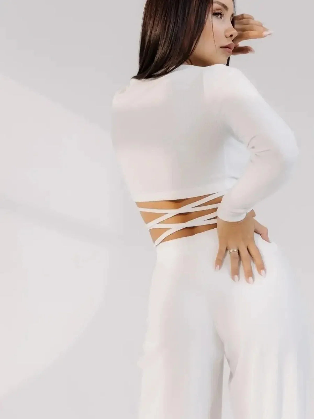 Designed to be styled together or as separates, this set adapts with ease—pair the top with denim for off-duty chic, or wear the trousers with a fitted bodysuit for evening elegance. Refined yet relaxed, the Cloud Wrap Set is the ultimate in modern versatility.