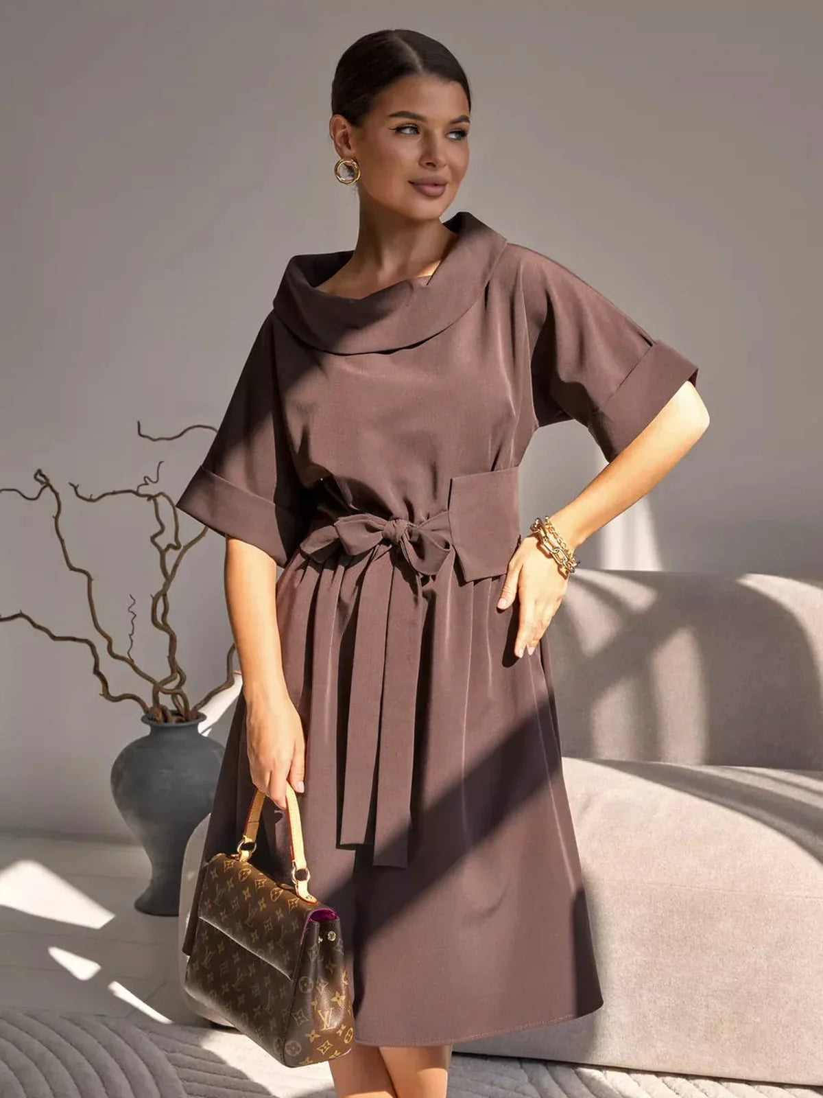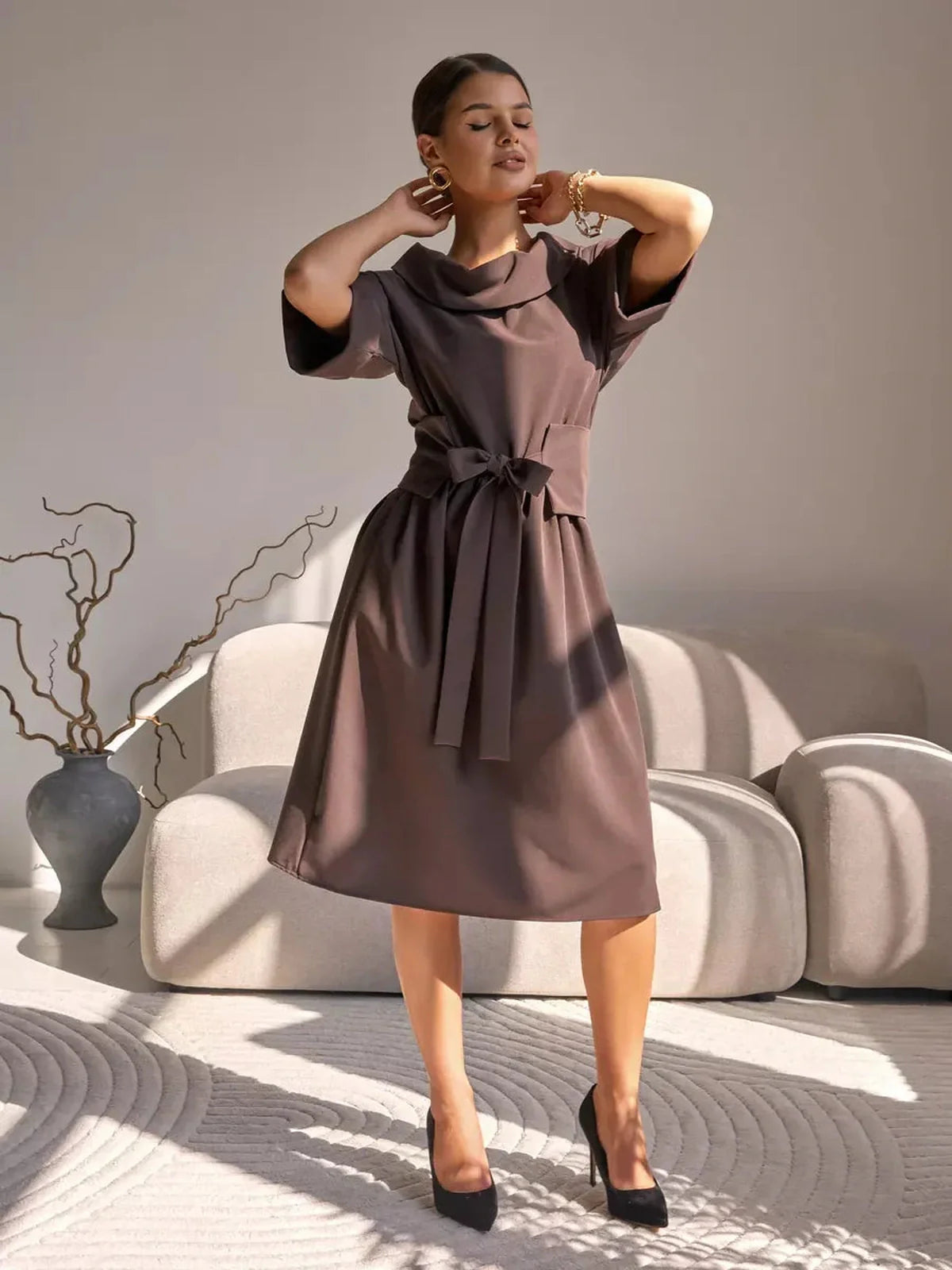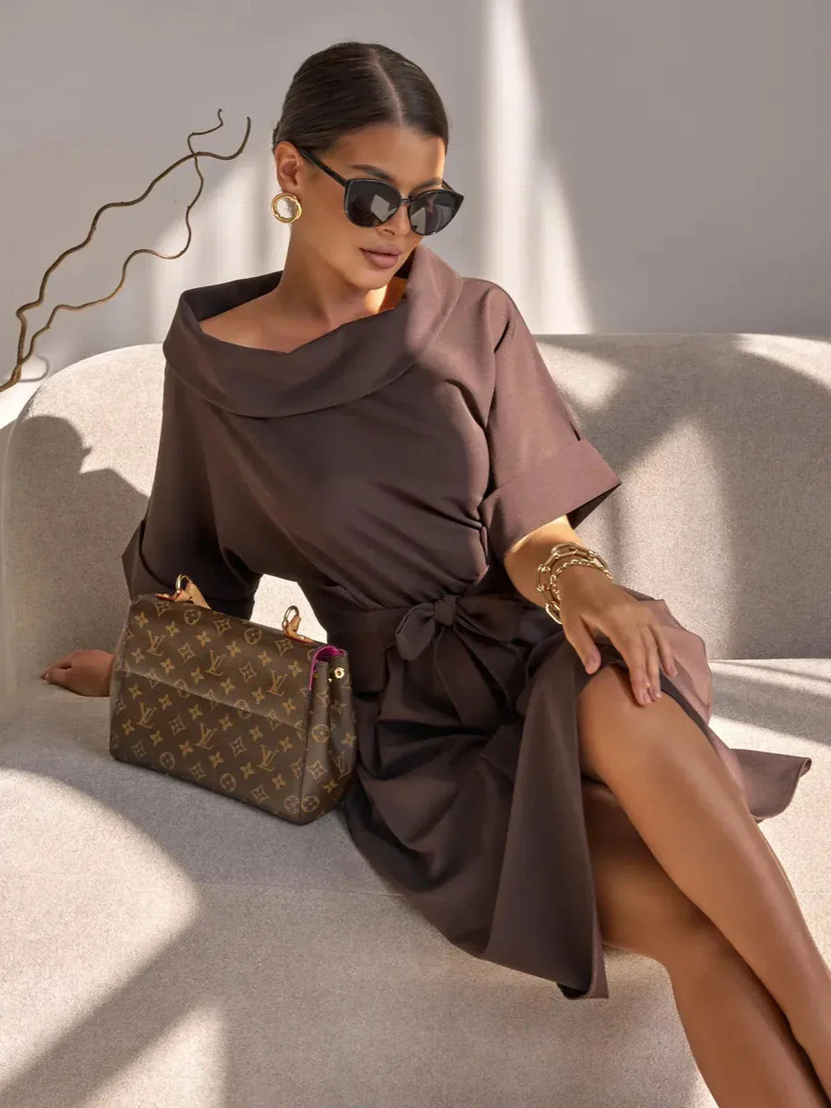 Understated sophistication meets relaxed allure in the Cowl Belt Mini Dress — a warm-weather essential crafted for effortless elegance. Designed in a rich chocolate brown hue, this women’s mini dress blends soft structure with graceful drape, offering a look that’s both modern and timeless. Perfect for transitional styling, it’s the ultimate blend of comfort and polish.
