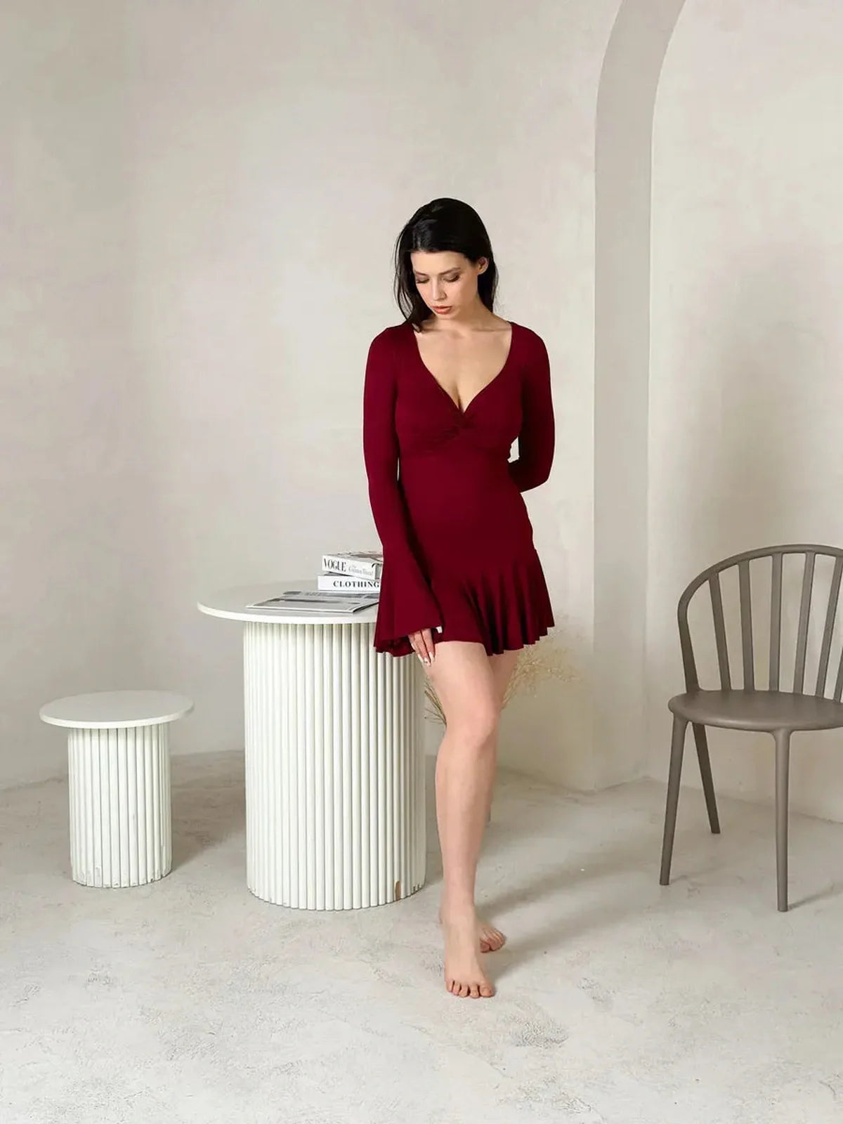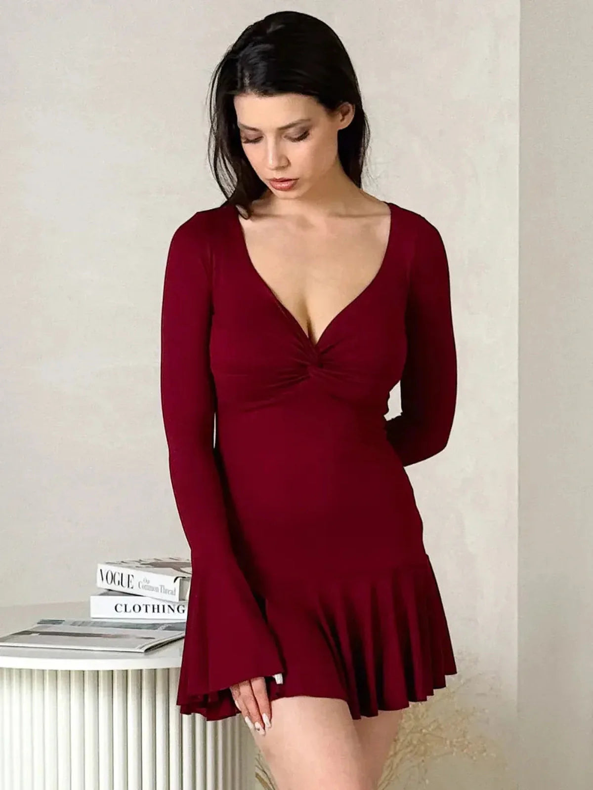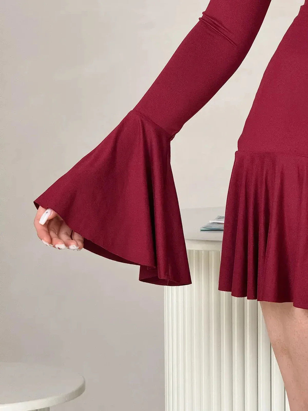 Turn every entrance into a moment with the Marvella Mini Dress, a stunning fusion of softness, structure, and statement design. Crafted from luxuriously breathable bamboo fabric, this women’s burgundy mini dress drapes beautifully over the body while maintaining its natural shape and movement. The result — a silhouette that’s both romantic and refined, perfect for occasions that demand effortless sophistication.