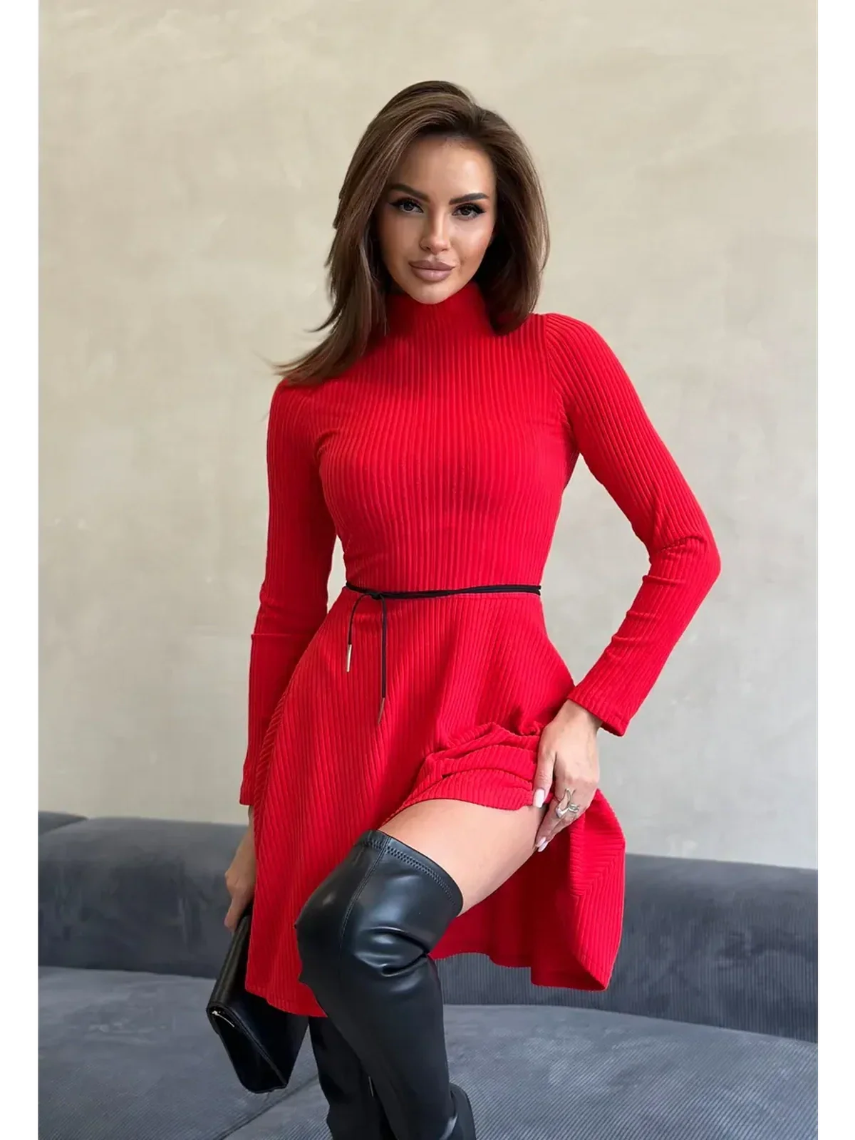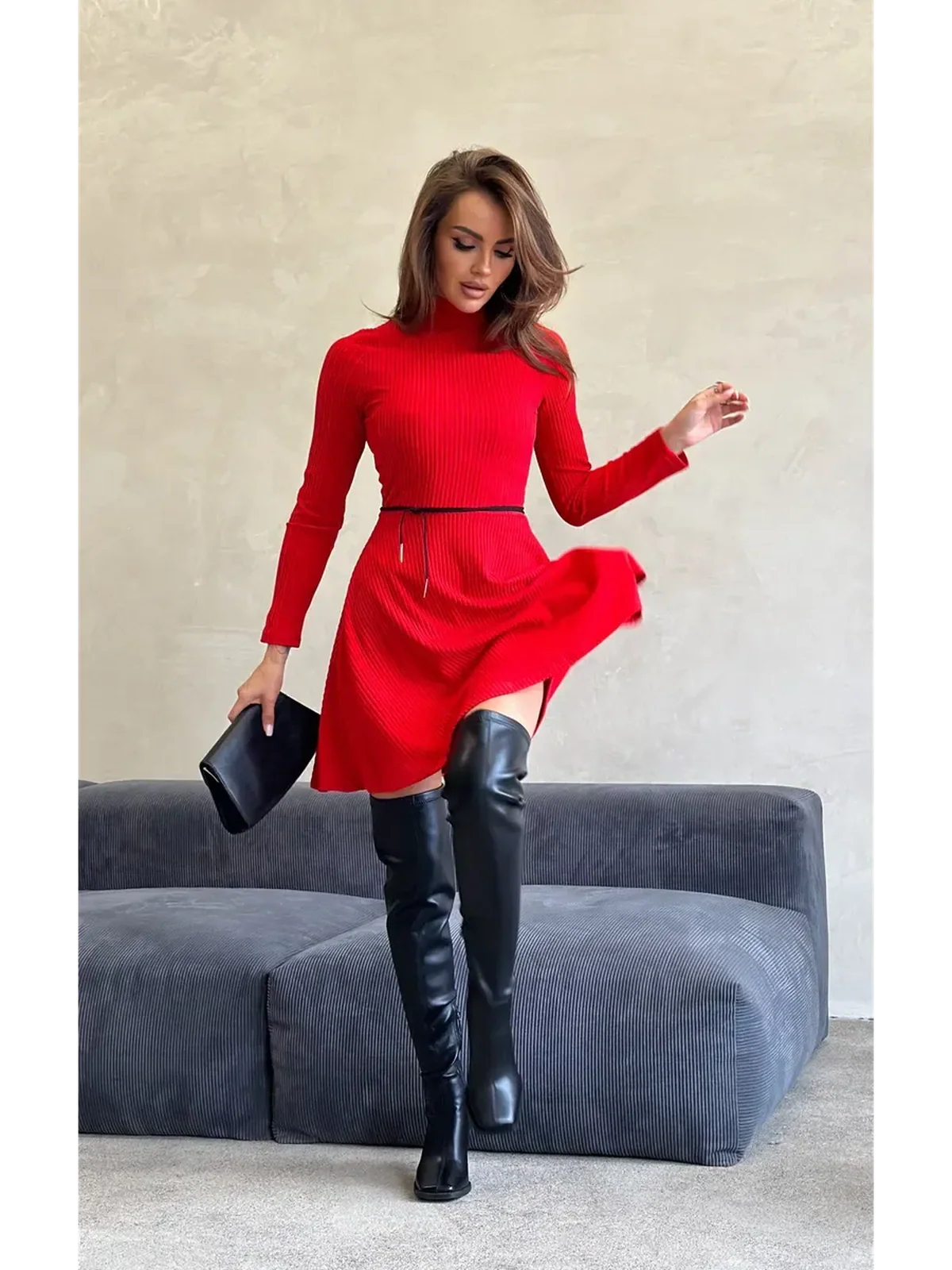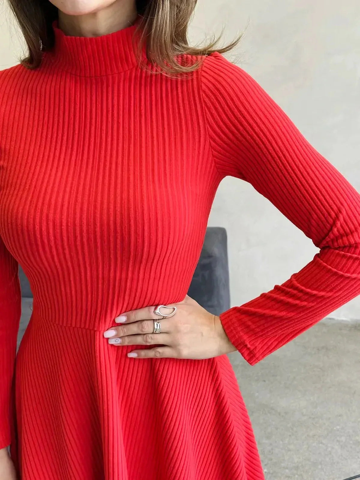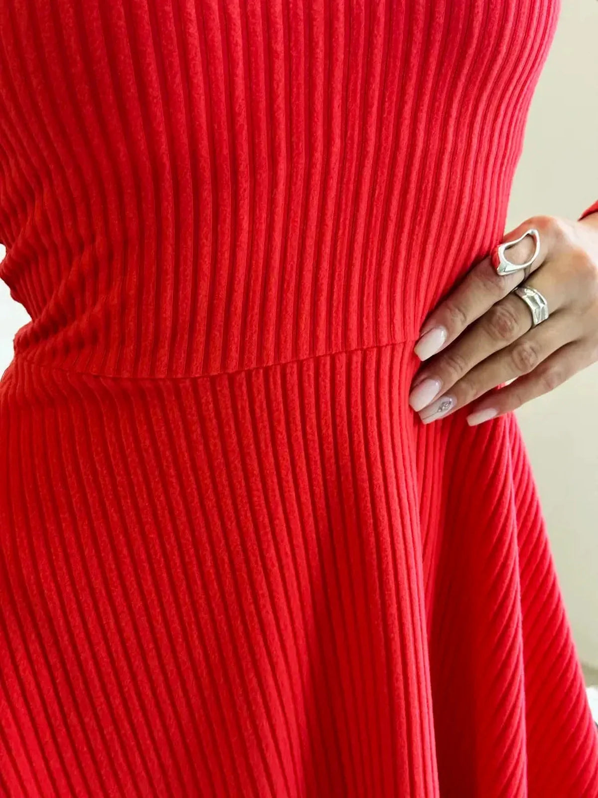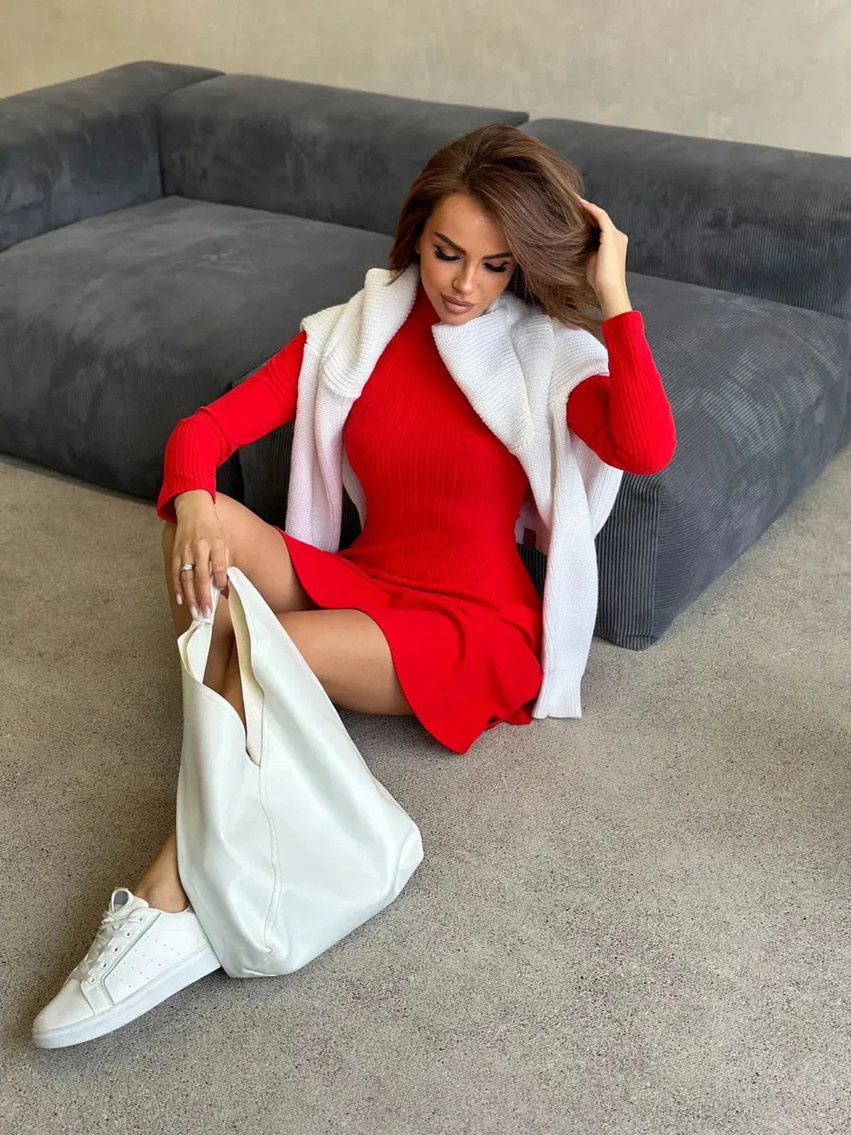 Command attention in the Crimson Frame Mini Dress — a striking red dress that blends refined structure with fluid movement. Crafted from a luxurious ribbed knit blend of cashmere, cotton, and elastane, this long sleeve dress delivers unmatched softness, subtle stretch, and a sleek fit that accentuates your shape while ensuring all-day comfort. Perfect for moments when you want to feel both confident and effortlessly elegant.