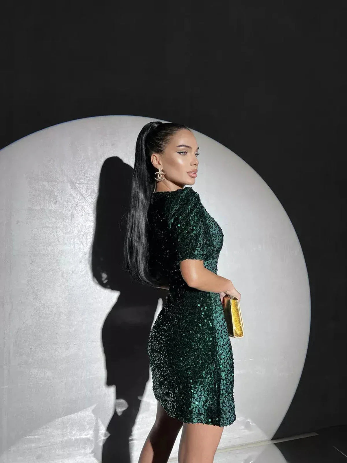 Command the spotlight in the Emerelle Mini Dress, a showstopping fusion of structure, shimmer, and sophistication. Drenched in rich emerald-green sequins, this women’s sequin mini dress catches the light from every angle, making it the ultimate choice for glamorous evenings, formal celebrations, and unforgettable parties.