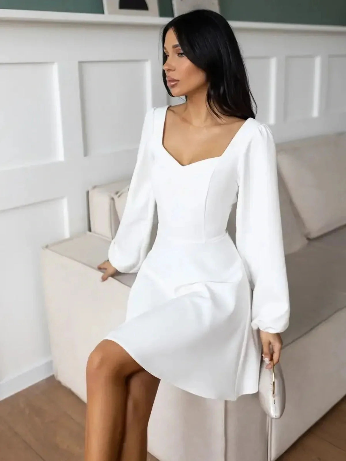 Perfect for women seeking a white mini dress for weddings, parties, or formal occasions.