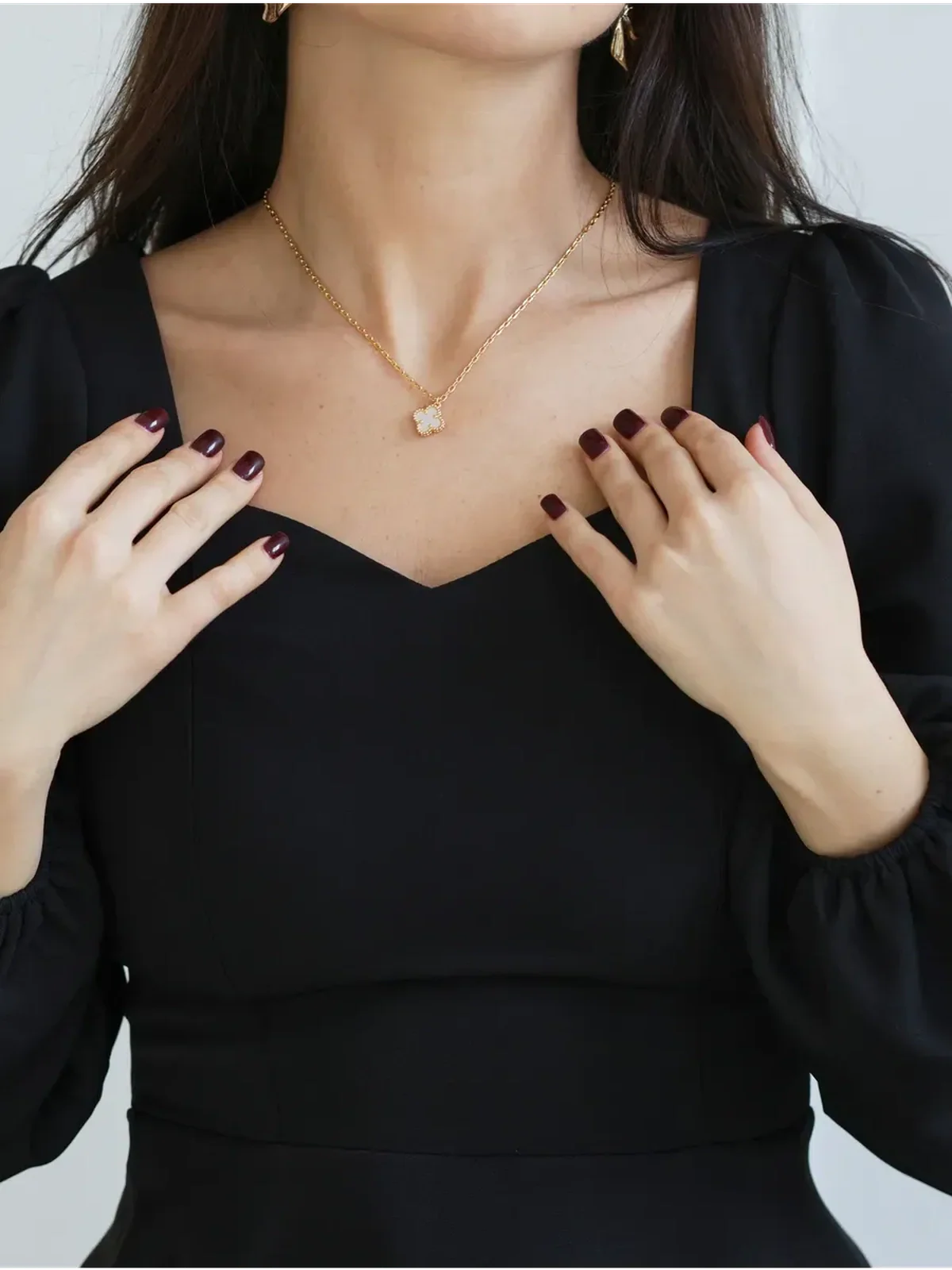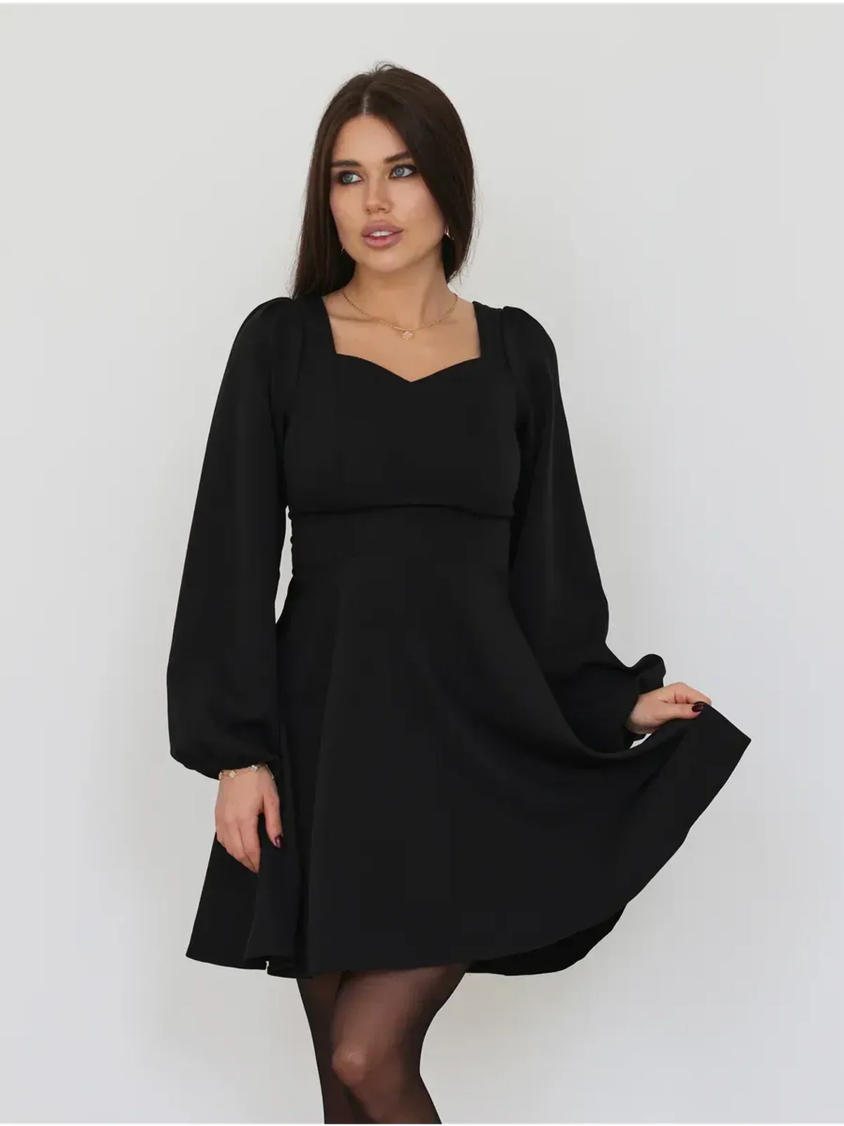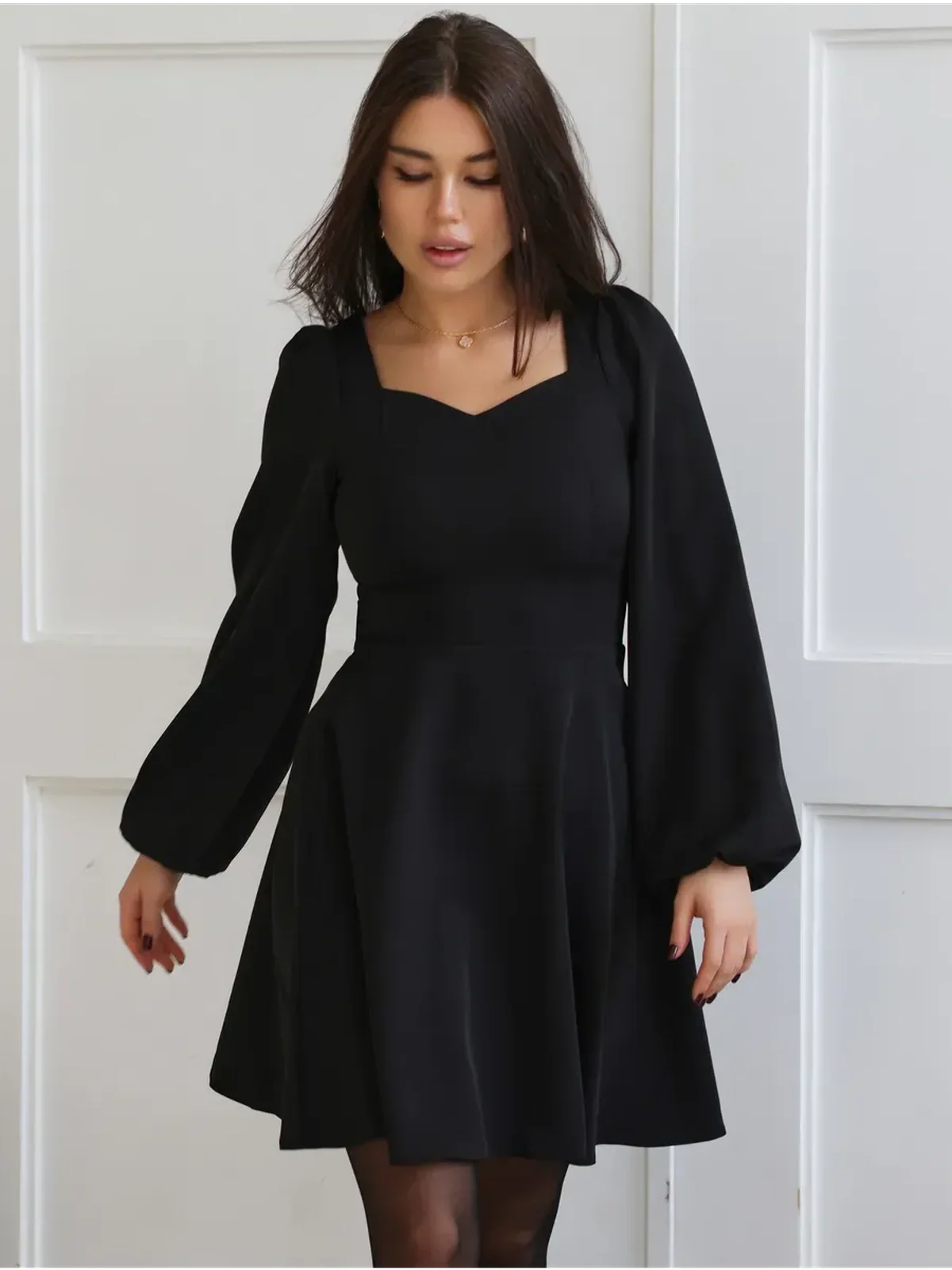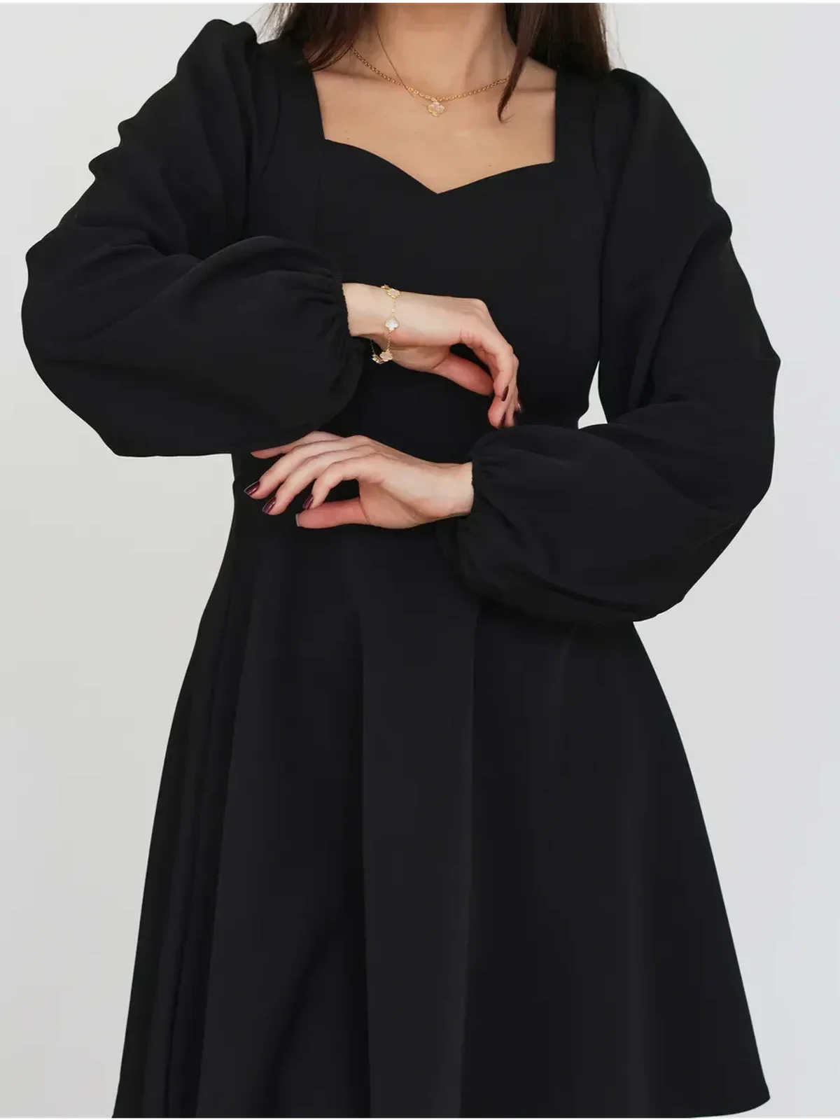 Embrace timeless sophistication with the Midnight Bloom Mini Dress, a stunning black dress that merges modern allure with classic refinement. Its sculpted fit-and-flare silhouette highlights the waistline and enhances your natural shape, while the structured sweetheart neckline frames the décolletage with subtle grace. The voluminous long sleeves add a touch of statement drama, creating the perfect balance between power and poise.