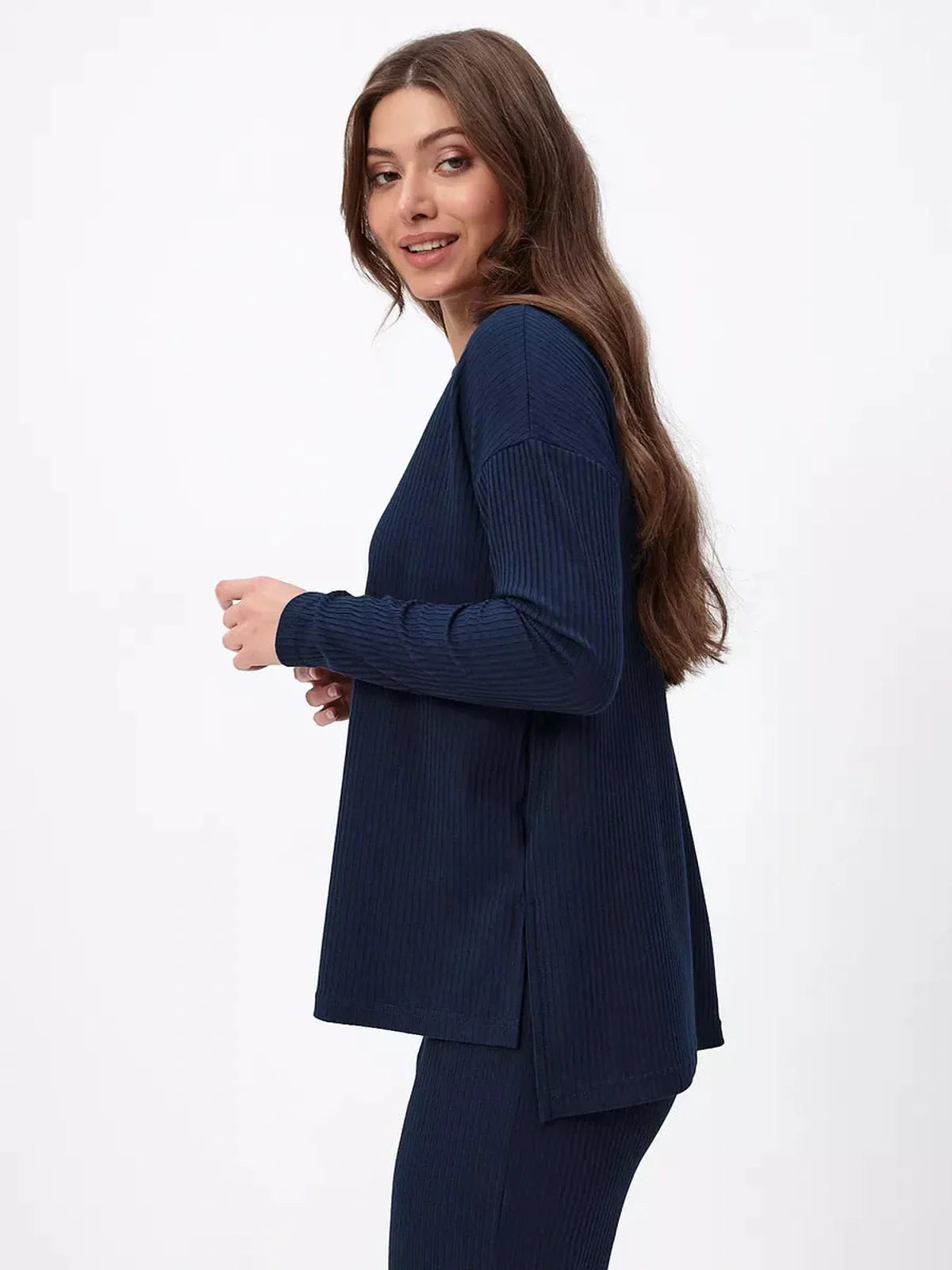 Whether styled as a coordinated outfit or mixed with everyday basics, the Midnight Ribbed Set adapts to any occasion. From cozy lounge days to city strolls and travel-ready looks, it’s a wardrobe staple for effortless sophistication.