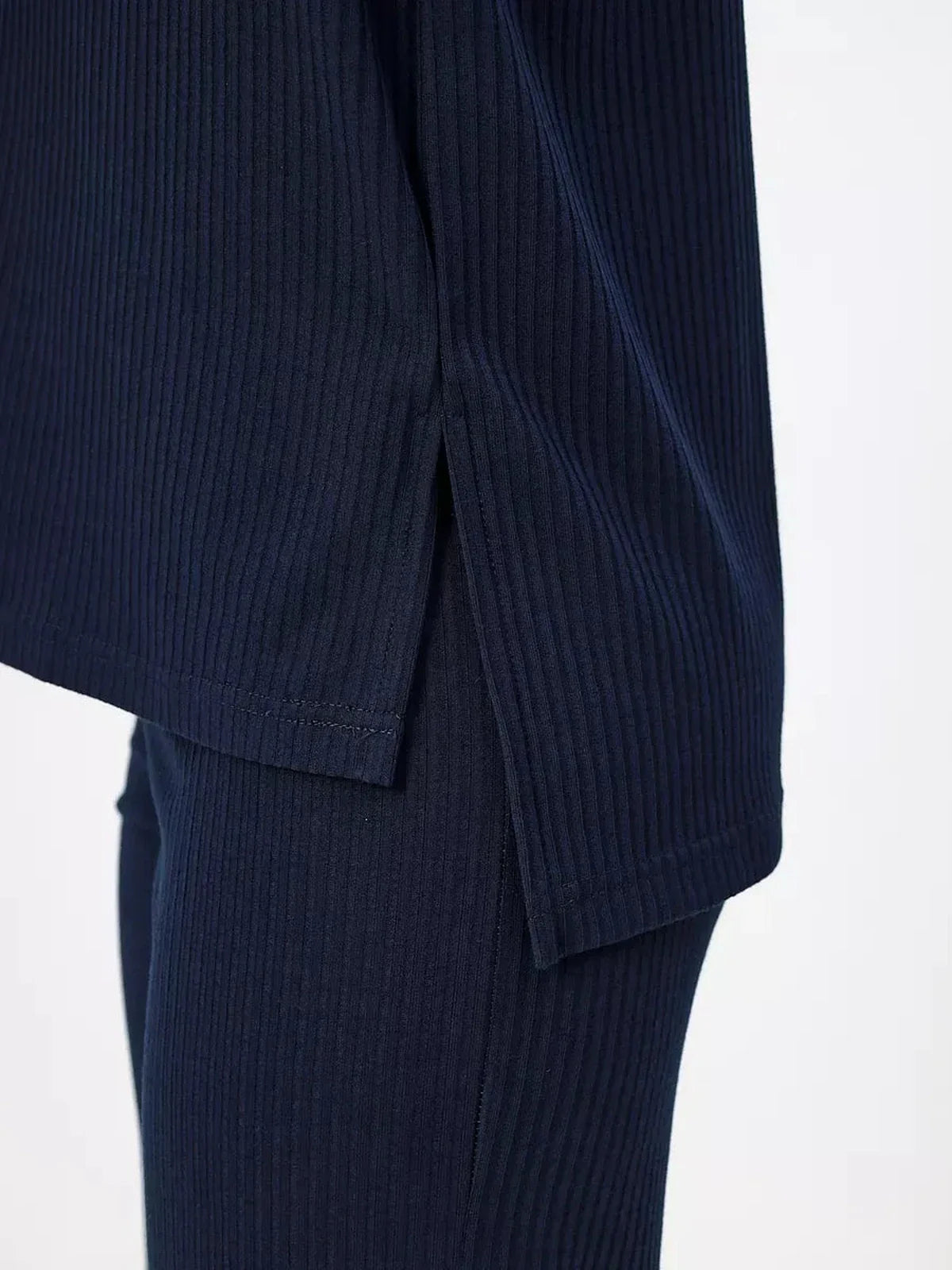 The Midnight Ribbed Set is the perfect balance of comfort and sophistication, designed for women who love versatile, elevated loungewear. Crafted in a deep navy ribbed knit, this two-piece ensemble features an oversized pullover top and flowing wide-leg trousers that move effortlessly with the body. Minimalist yet chic, it’s an essential co-ord for lounging, casual days, or transitional layering.