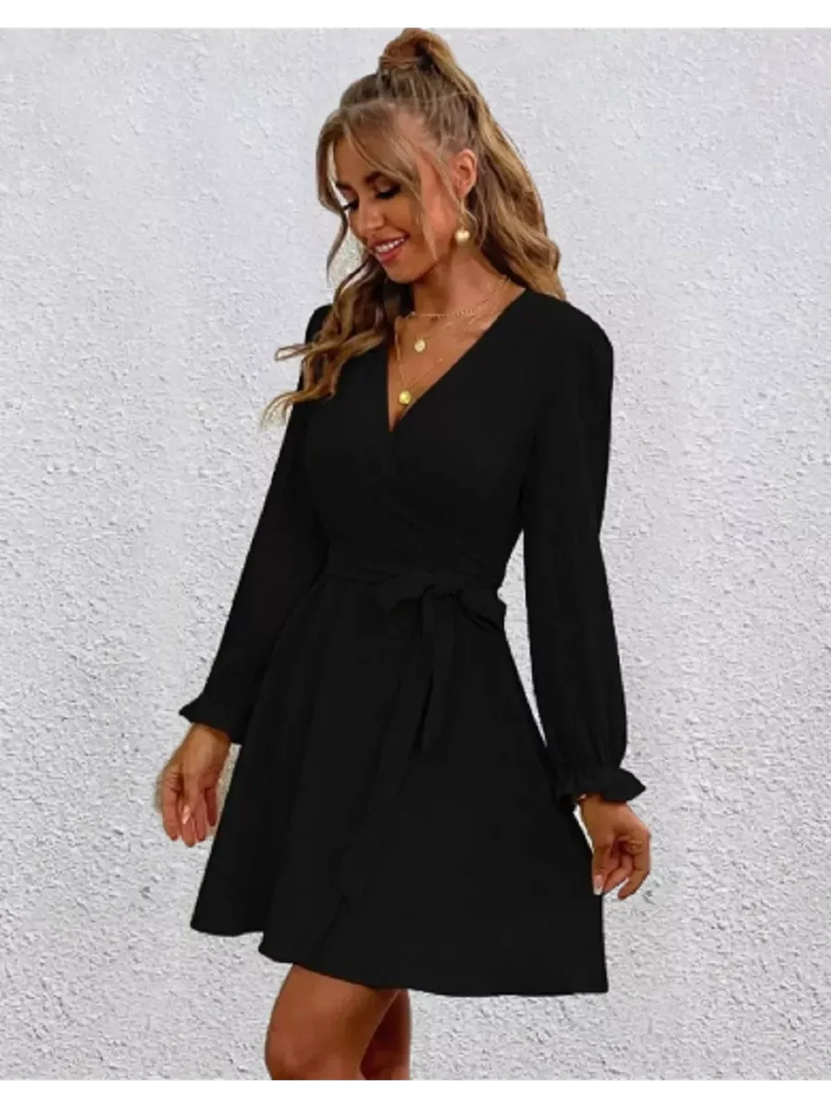 Own your style moment with the Midnight Wrap Mini Dress — where timeless meets effortless.