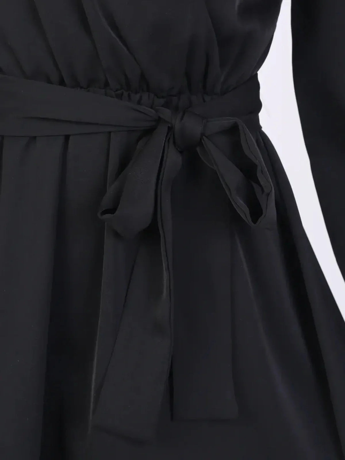 A black wrap dress that embodies confidence, grace, and timeless appeal.