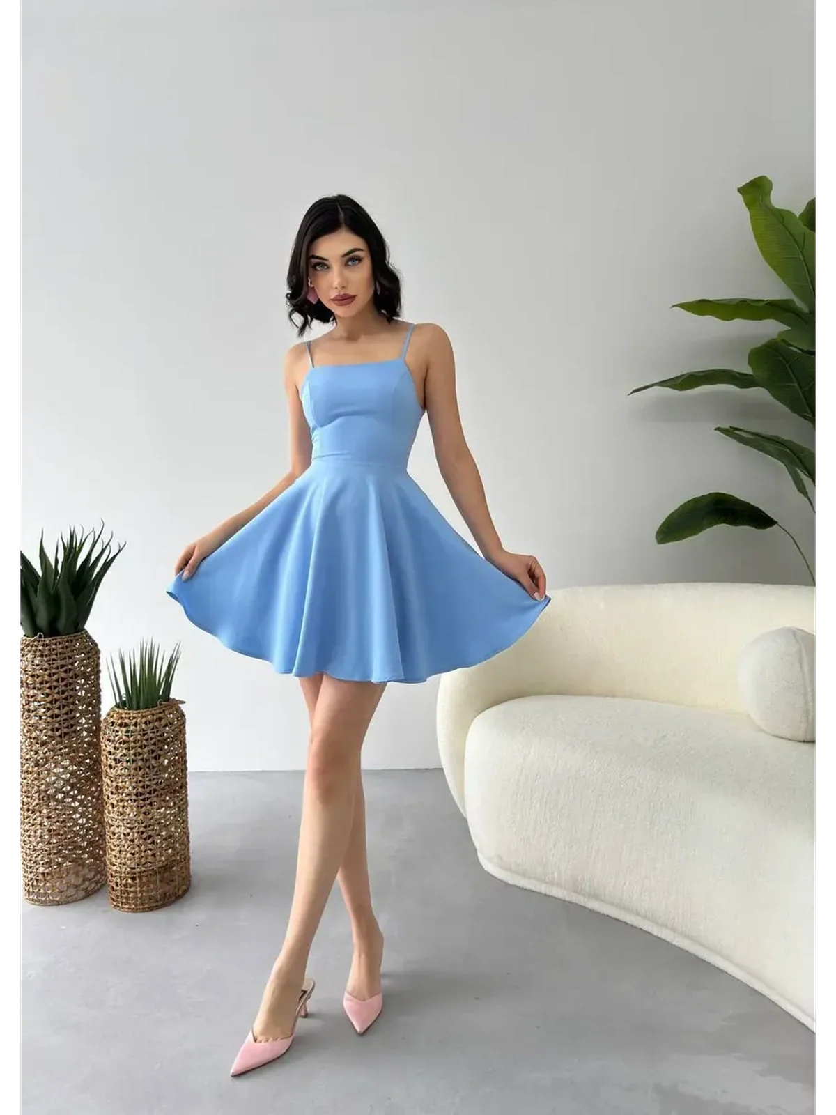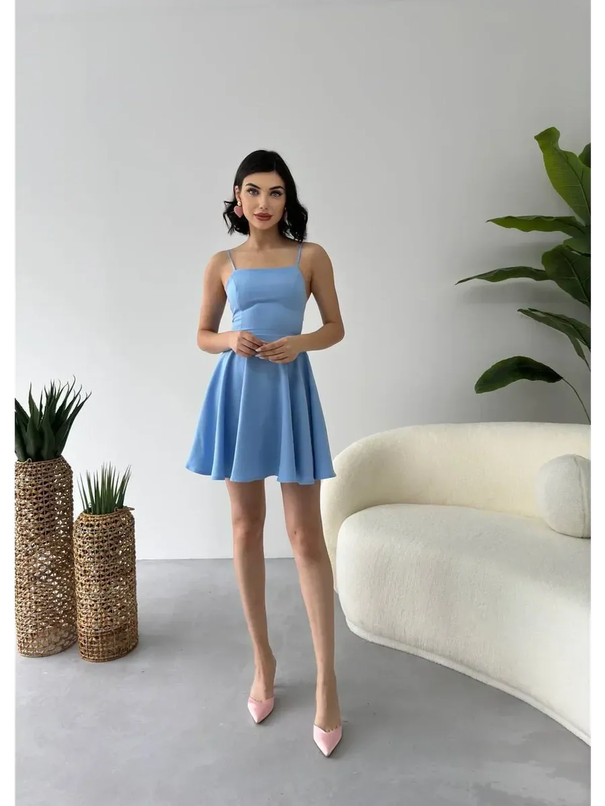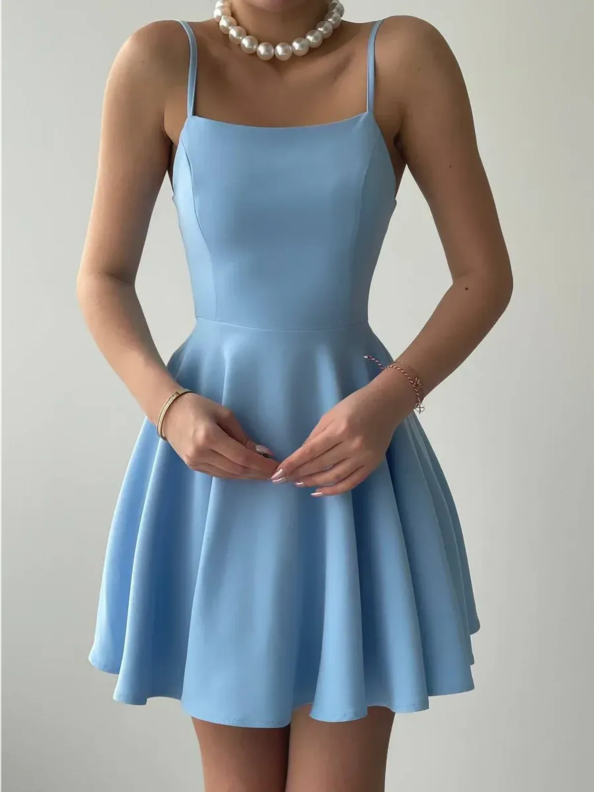 Meet the Skyline Charm Mini Dress — a breath of fresh air in soft sky blue. Designed to balance minimalist elegance with modern structure, this women’s light blue mini dress brings effortless sophistication to every summer occasion. Its straight neckline and delicate spaghetti straps highlight the shoulders with refined simplicity, while the flared A-line silhouette moves beautifully with each step.