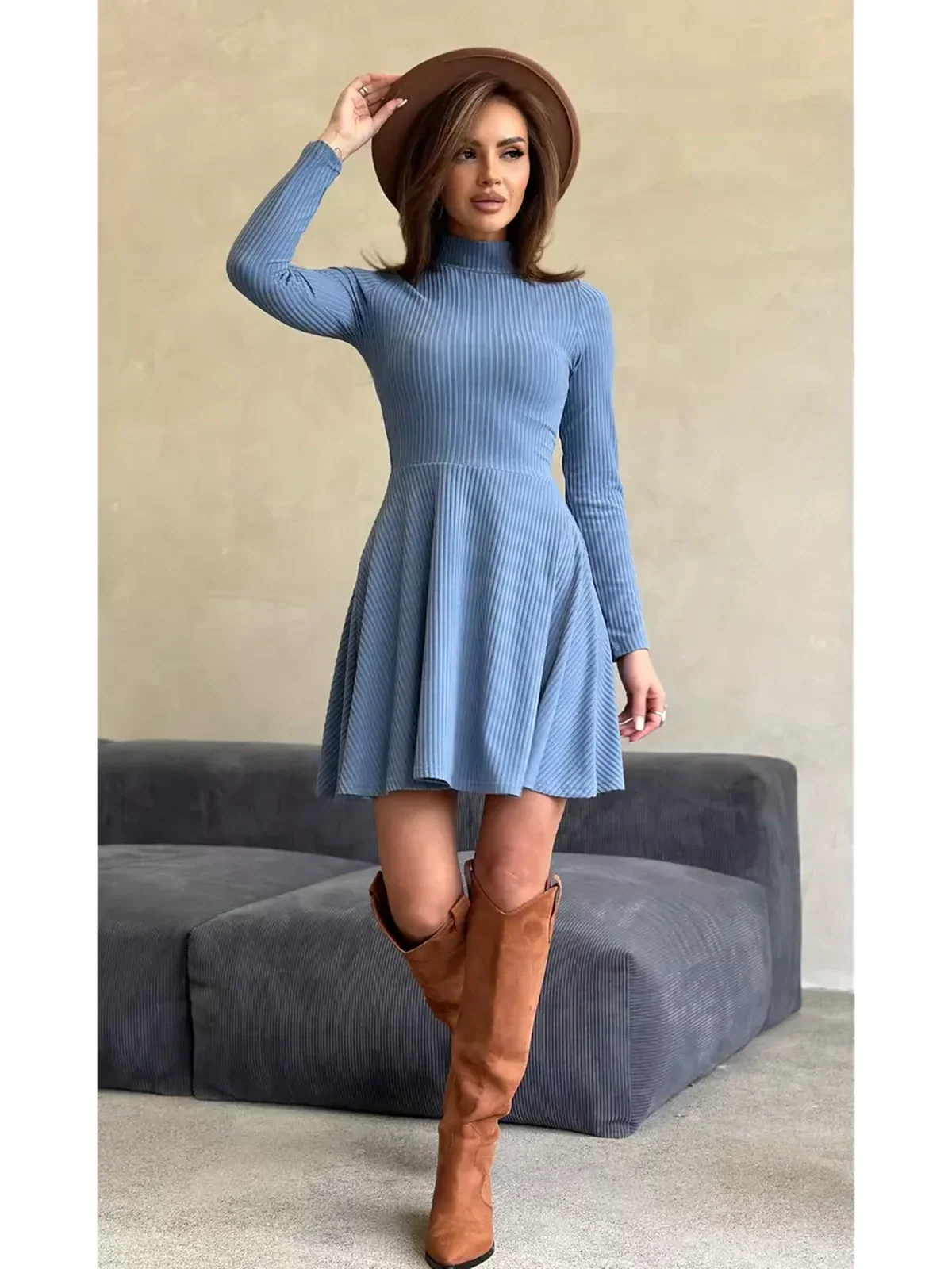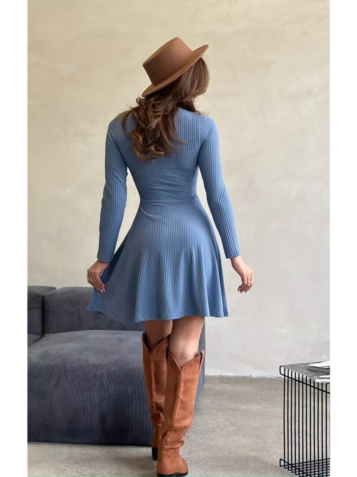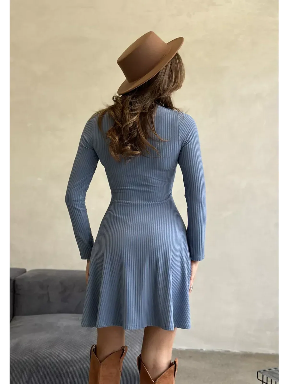 Step into understated sophistication with the Slate Whisper Mini Dress — a beautifully crafted ribbed knit dress that blends soft elegance with versatile modernity. Designed in a serene sky-blue hue, this long sleeve dress features a structured mock neckline and a sculpting bodice that flows effortlessly into a subtle skater-style skirt. The result? A silhouette that flatters every curve while offering graceful movement and all-day comfort.