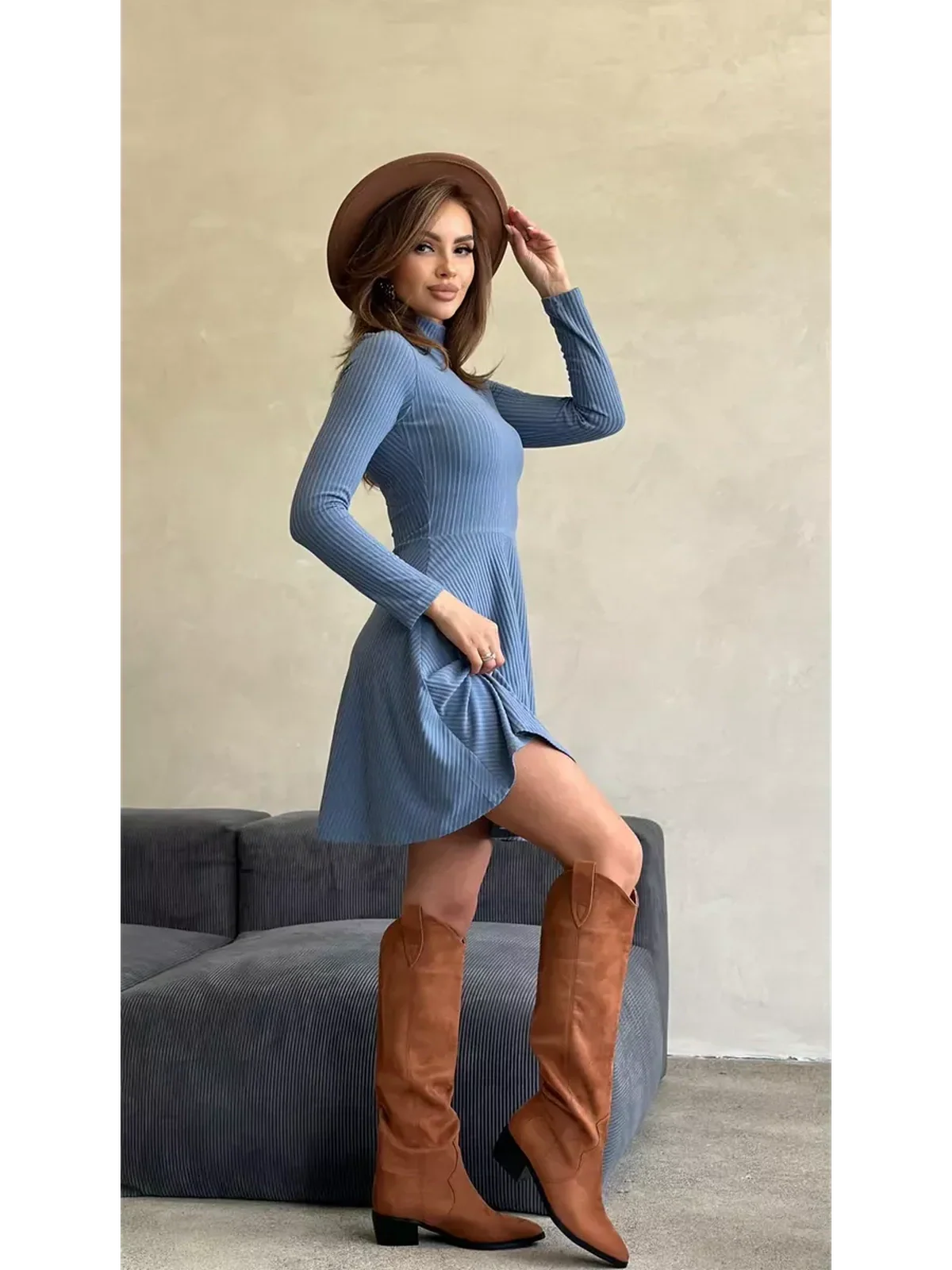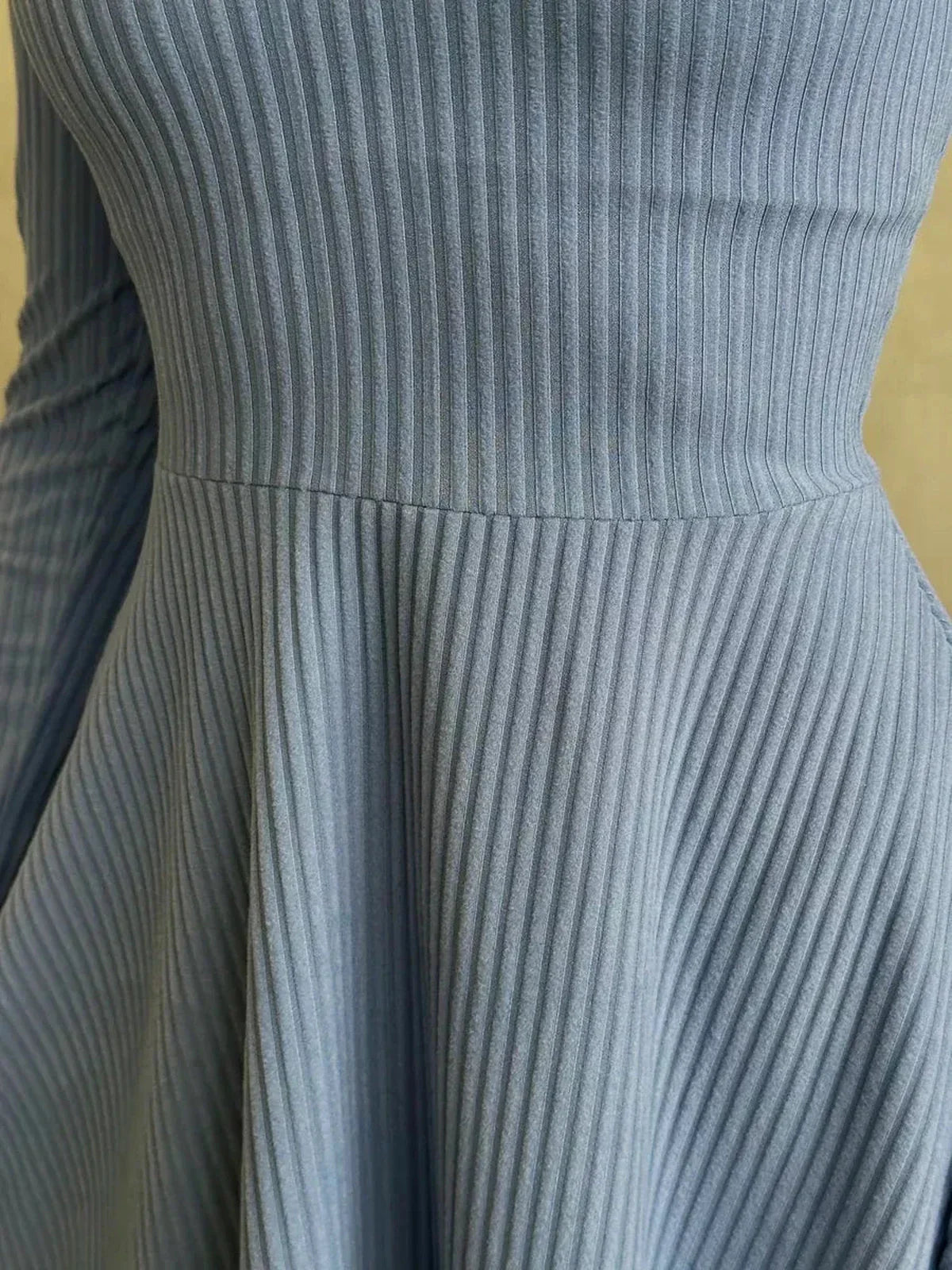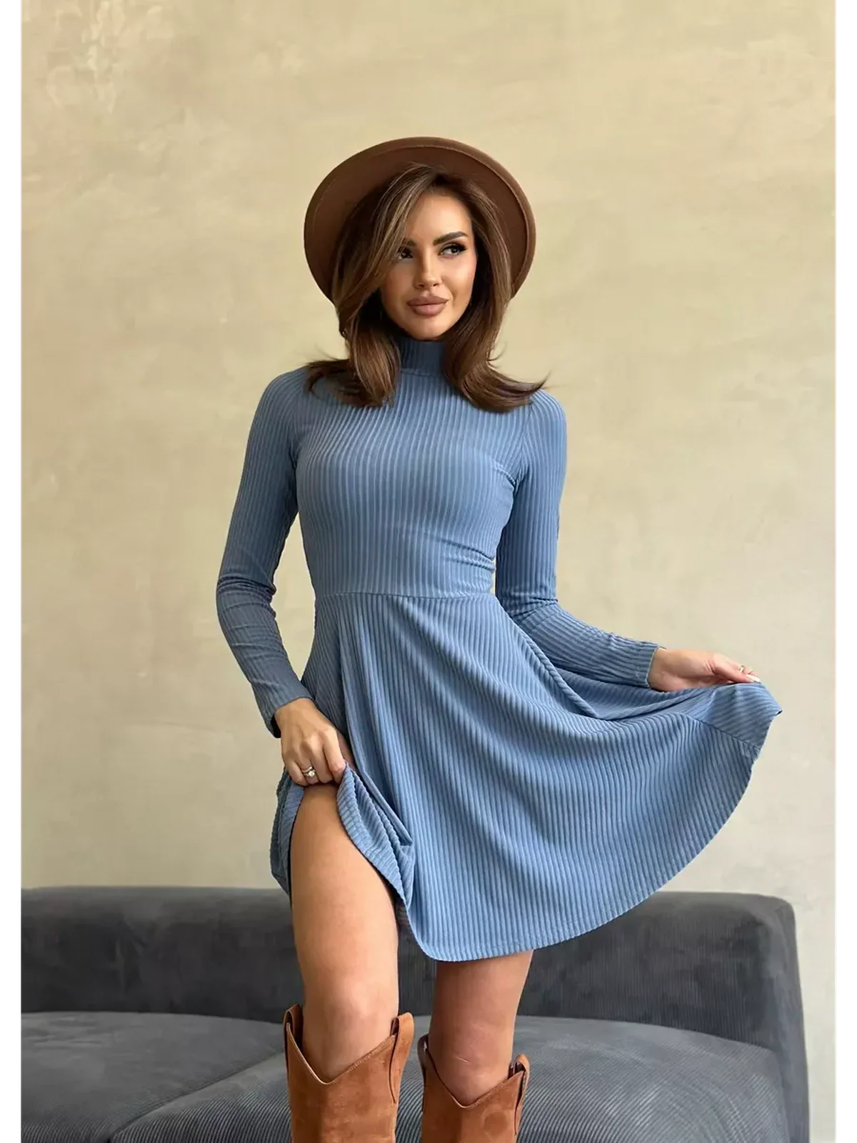 Step into understated sophistication with the Slate Whisper Mini Dress — a beautifully crafted ribbed knit dress that blends soft elegance with versatile modernity. Designed in a serene sky-blue hue, this long sleeve dress features a structured mock neckline and a sculpting bodice that flows effortlessly into a subtle skater-style skirt. The result? A silhouette that flatters every curve while offering graceful movement and all-day comfort.