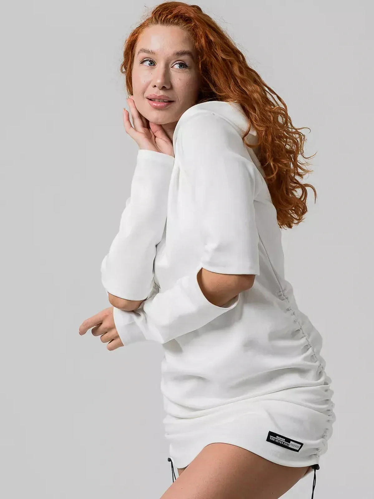 A versatile white mini dress that merges modern minimalism with streetwear edge.